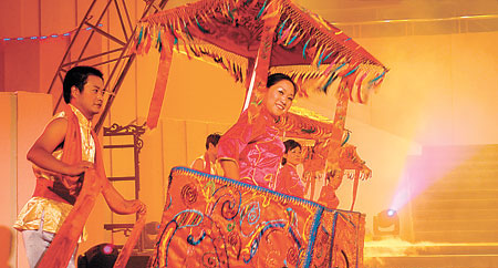 荷花舞,又名盒灯,鲤鱼闹莲,灯的形状似一朵荷花而得名为荷花舞。起源于尉氏县城关镇南街村,距今有100多年历史,是一种很稀有的舞蹈形式。表演一般在夜间进行,表演者一般是10—12岁的男女儿童,身高一米左右,动作整齐划一,舞姿十分优美,尤其是晚上,在四钹一盘大鼓,一面开道大锣和两面二锣等铜器声中,一队化妆新颖的少年儿童天真活泼地双手端两盏荷花灯上场,其中每四个端荷花灯者配有一鱼灯,表演时,荷花灯、鱼灯互相穿梭嬉戏、斗趣,通过不断地变换队型,完成“四门斗”队型组字,铁李困、倒卷莲等舞蹈动作和套路。队首一般根据当年农历是什么属相而定,当年是什么年就举什么动物形状的灯。 |